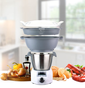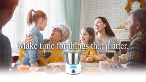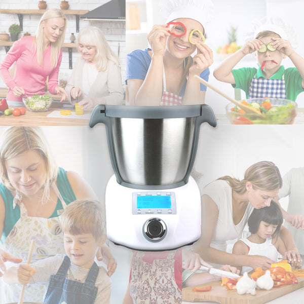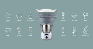 This all-in-one food processor can: chop | simmer | steam | stir | slow-cook | boil | mix | roast | blend & more!